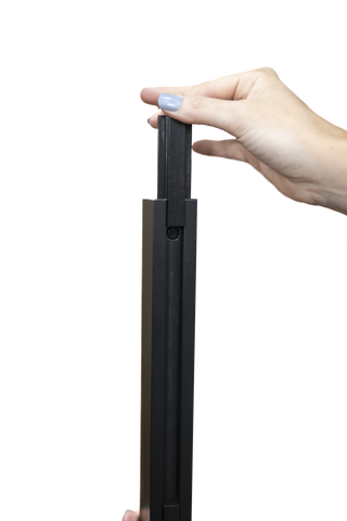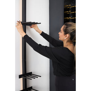 This patent-pending floor-to-ceiling wine rack system assembles in minutes with no measuring and very few screws involved! Simply slide spacers and cross supports into the channel and allow gravity to do the work.