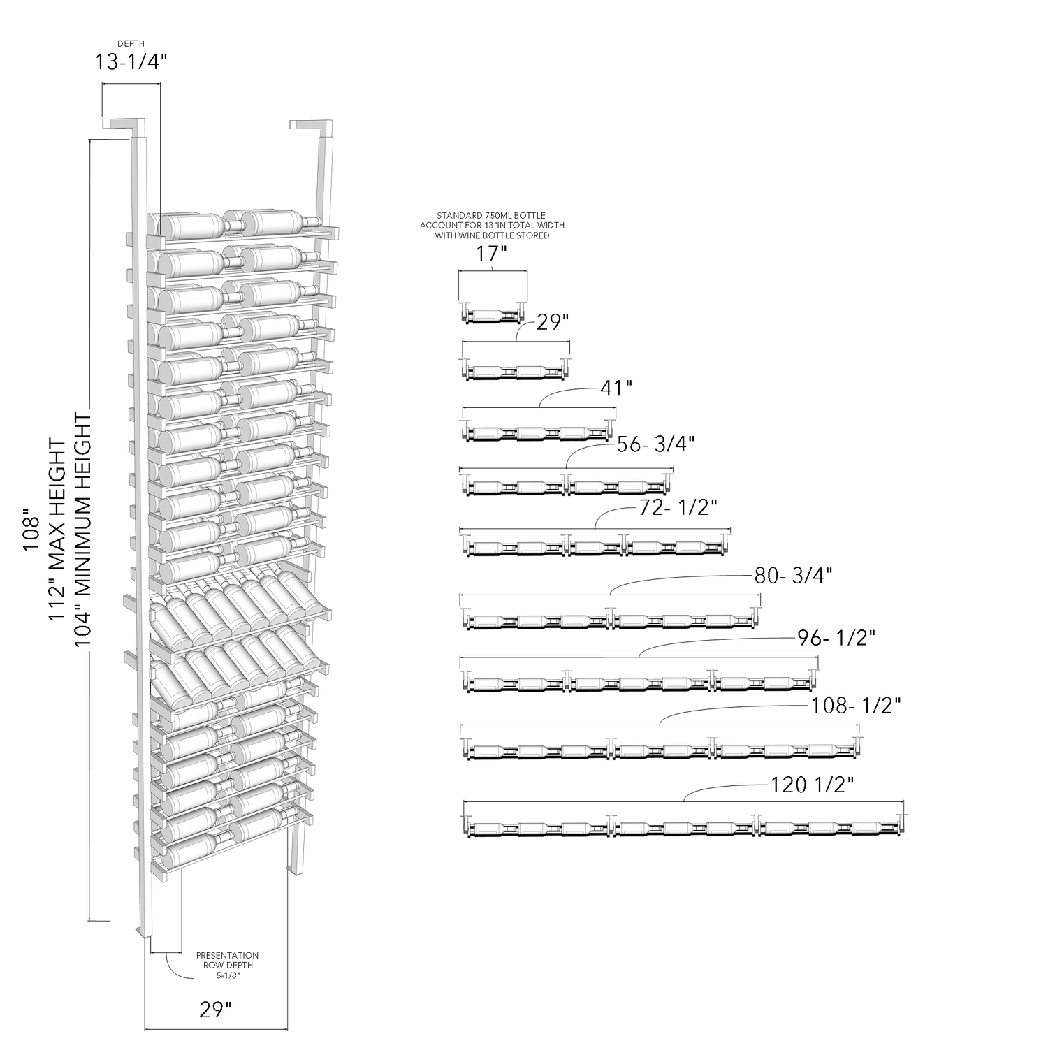 - 2 Bottle Deep = 13 1/4" (due to depth of angled rows)
