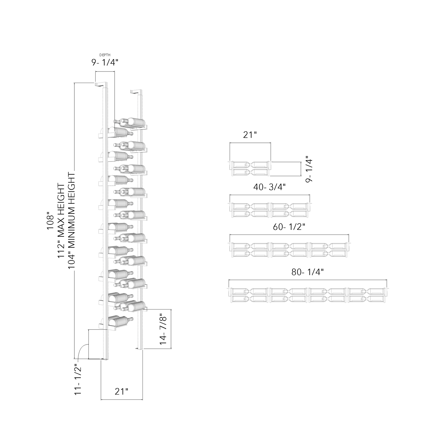 All Millesime products come with telescopic uprights, for mounting floor-to-ceiling wine racking.