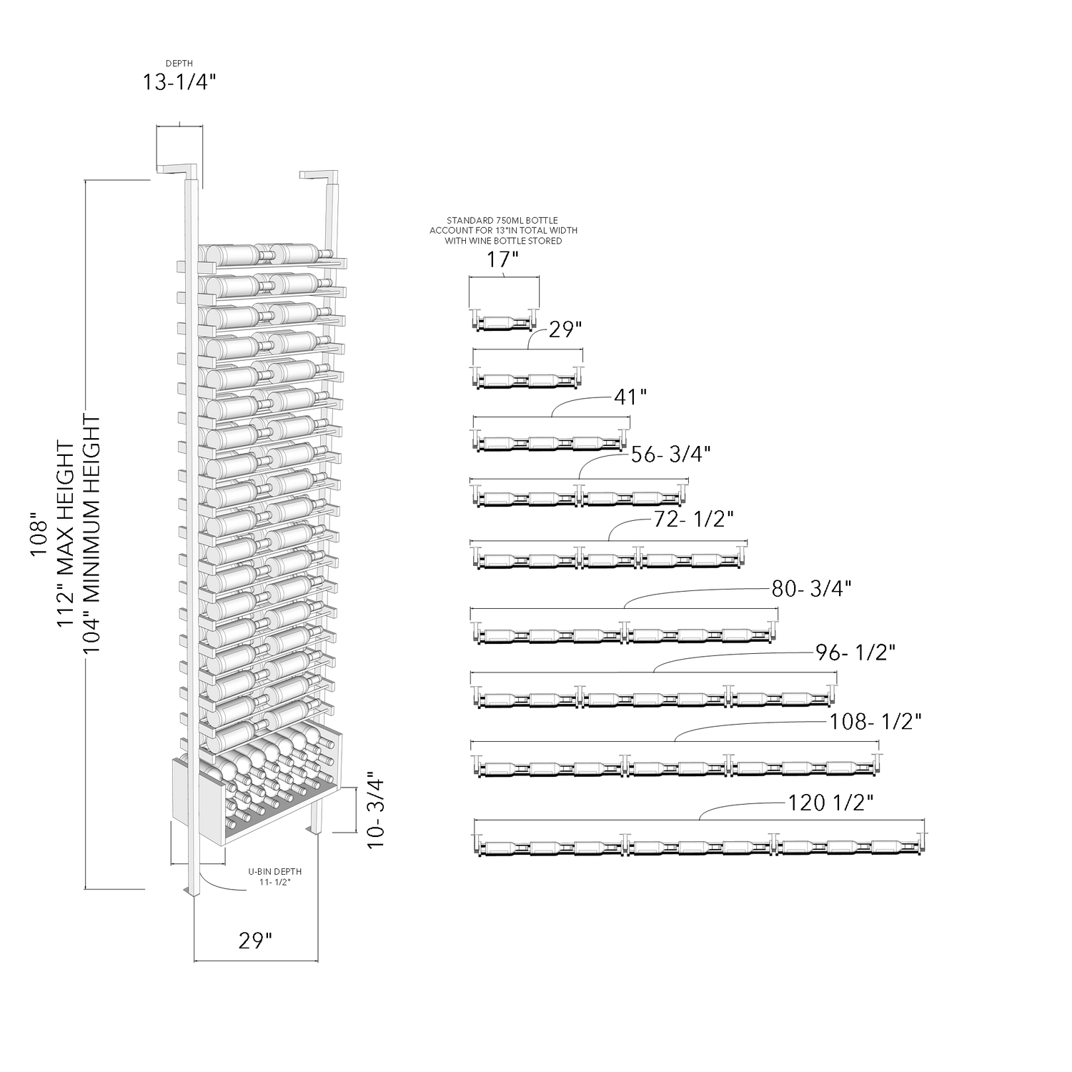 - 2 Bottle Deep = 13 1/4" (due to depth of u-shelf)