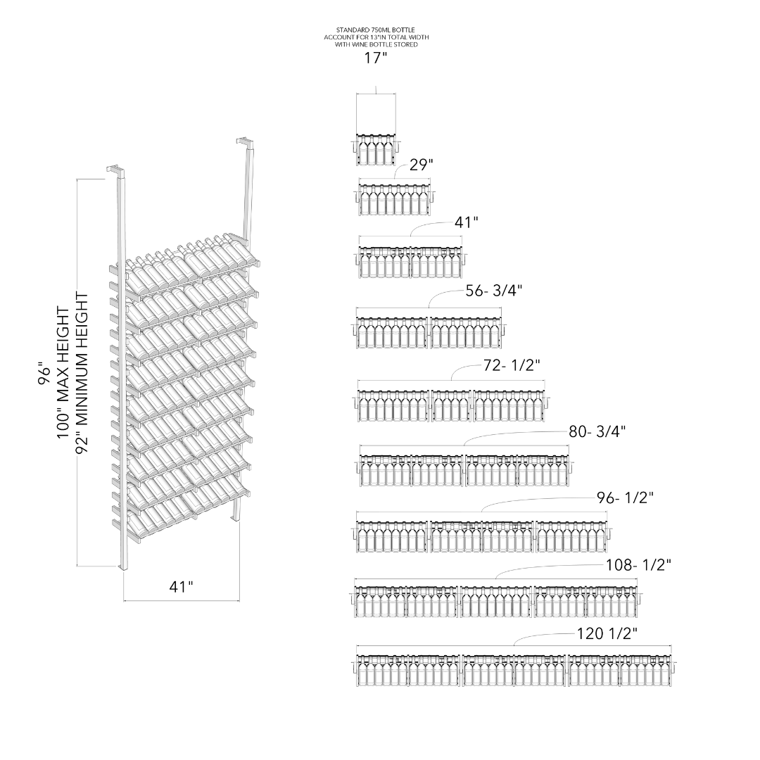 All Millesime products come with telescopic uprights, for mounting floor-to-ceiling wine racking.