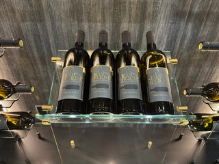 Bottle spacing is completely customizable, and you can choose between one- or two-bottle cradles depending on your capacity requirements. To further enhance your display, you can integrate standard flat shelving for liquor bottles or glassware, and our new angled presentation shelves are also now available.