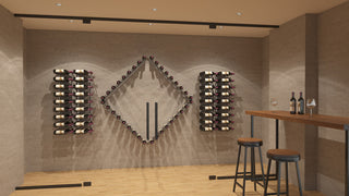 No need to purchase or manufacture a separate mounting panel, just plot your layout on your existing wall and install. Vino Pins allow you to display bottles with labels facing forward, one, two or three bottles deep. Vino Rails point the necks of the bottles forward and are extremely minimal in material.