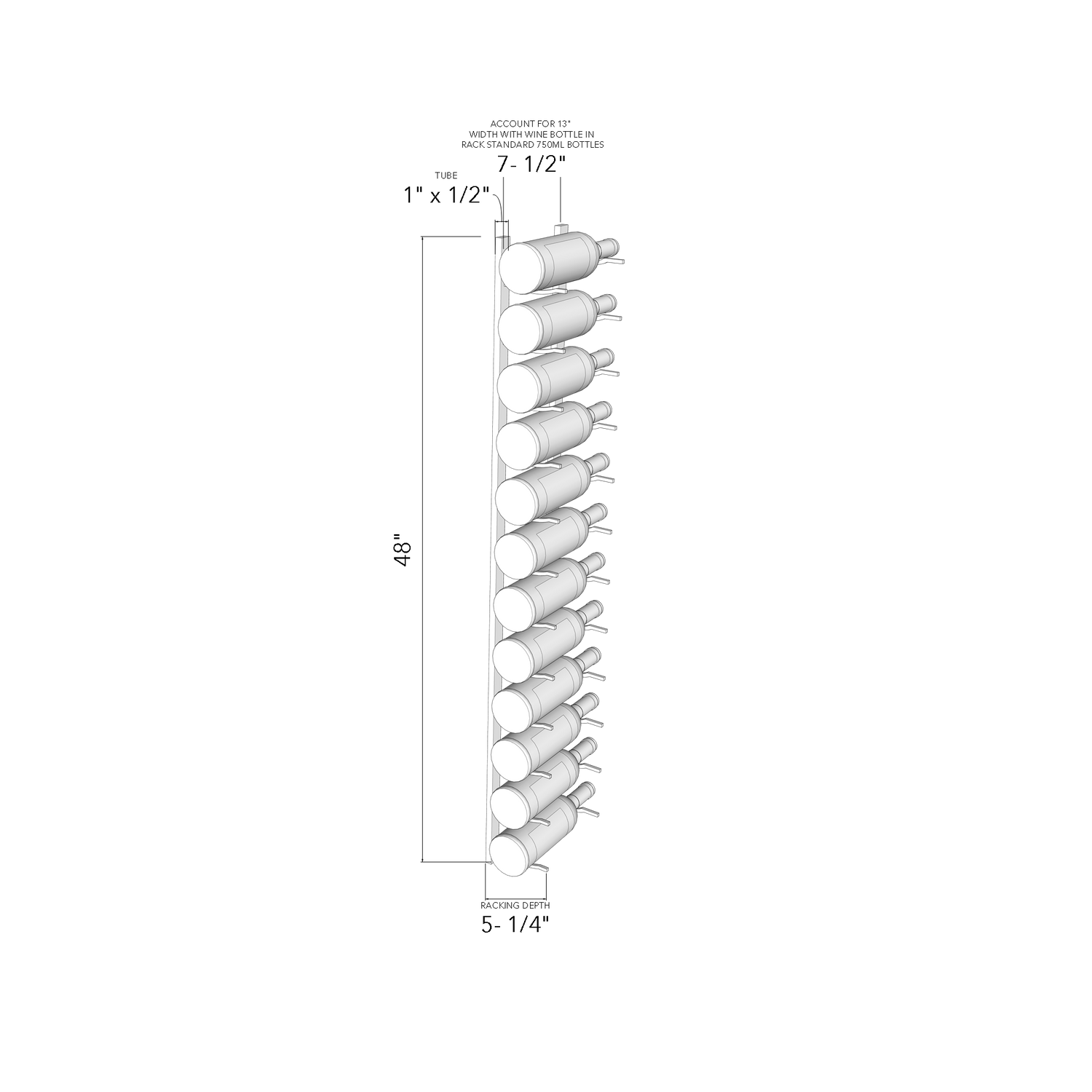 - Allow a minimum of 13” (bottles are wider than the rack)