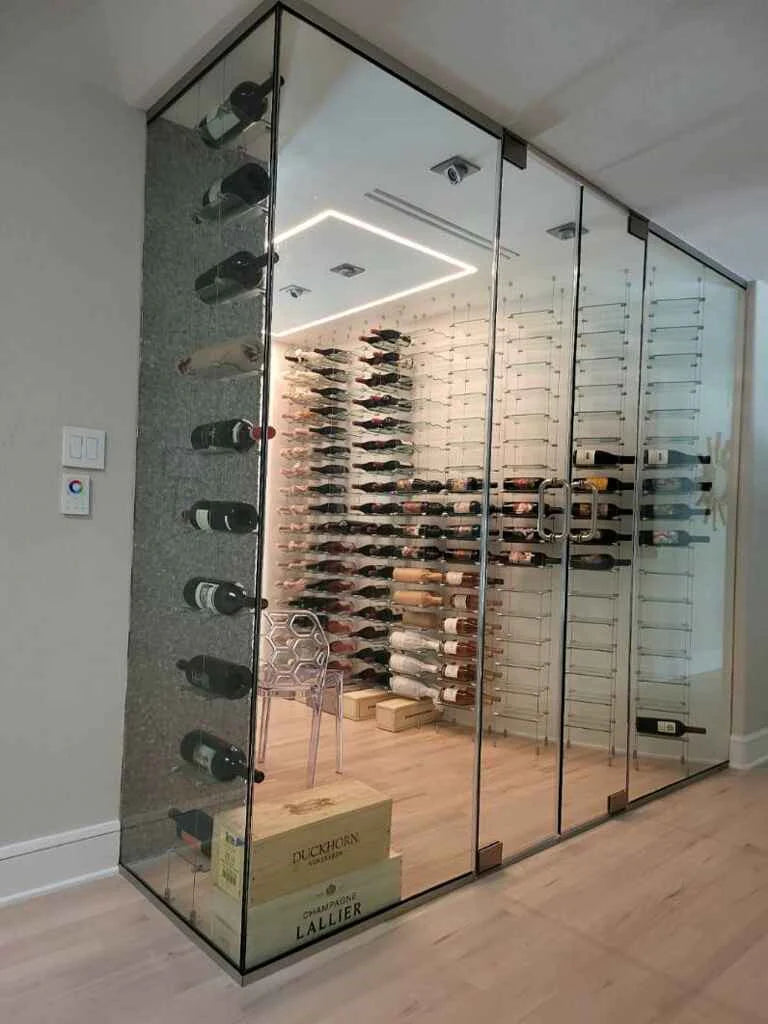 Float Wine Racks in Glass Cellar