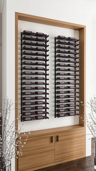 - Note: This wall wine rack system can accommodate Bordeaux, Pinot Noir and even most Champagne bottles.