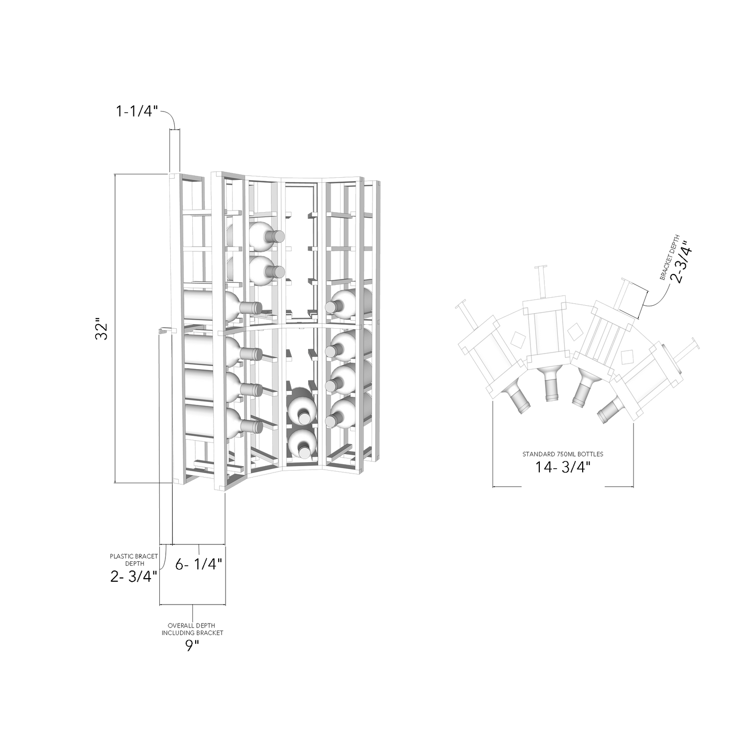 - Note that the wood wine rack is 6 ¼” deep with a plastic bracket that extends 2 ¾” from the back of the wood wine rack to secure to the wall.